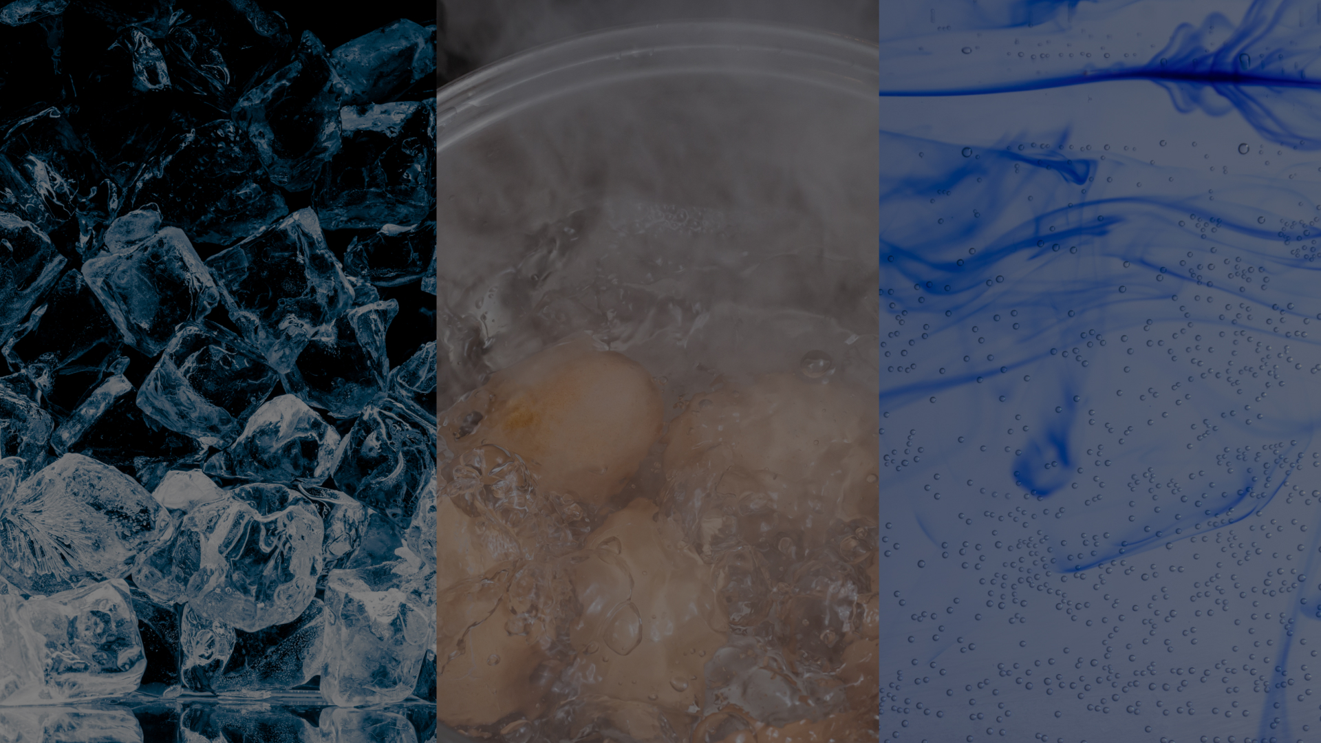 生命の源である「水」は、2つの水素原子と1つの酸素原子が結びついてできる、シンプルながらも不思議な力をもつ物質です。水分子は高速で移動し、形と大きさが絶えず変化しているため、自由に形を変えることができます。そのため、氷・水・水蒸気の3態に変化し、周りのものを「冷やす」「温める」、さらに「溶かす」機能をもつ特徴のある物質です。その機能を最大限発揮させる水処理は、あらゆる産業の発展を支え、地球環境の保全にも貢献しています。