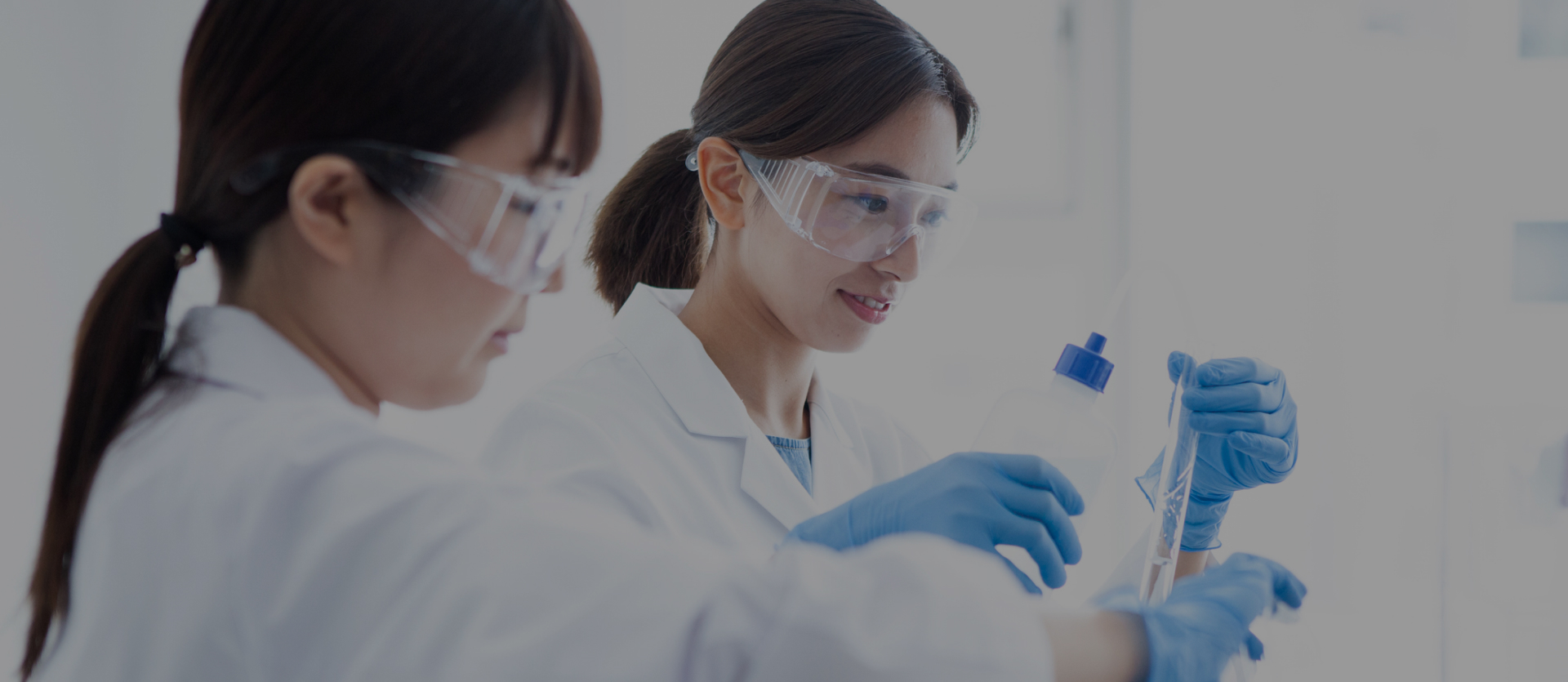 薬品:候補薬品の入手や試作品合成とその性能評価を繰り返し行い、目標とする性能を発現する薬品成分を明らかにします。また、薬品が作用する機構の仮説をたて、その検証も行います。