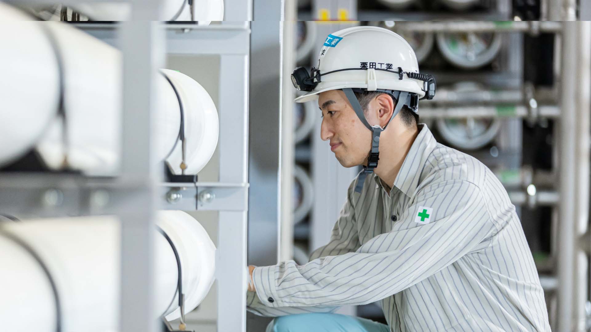 超純水供給事業における運転管理の仕事は、当社の資産でお客様の工場内に建設したすべての水処理プラントの運転管理をしています。超純水の製造・供給から排水処理、排水回収にいたるまで、さまざまな水処理プラントを24時間365日安定運転させるため、クリタグループと協力会社の100名以上の仲間と体制を組み、一丸となって運転管理をしています。また、プラントのメンテナンスや改造、法令対応、さらにはお客様の新工場建設に参画し、運転管理で培った知見やノウハウを駆使してお客様へ高い価値を創出・提供するための、営業をはじめとした社内各部署との協働も行います。 運転管理の仕事はその大きなスケールと幅広い業務範囲が特徴です。