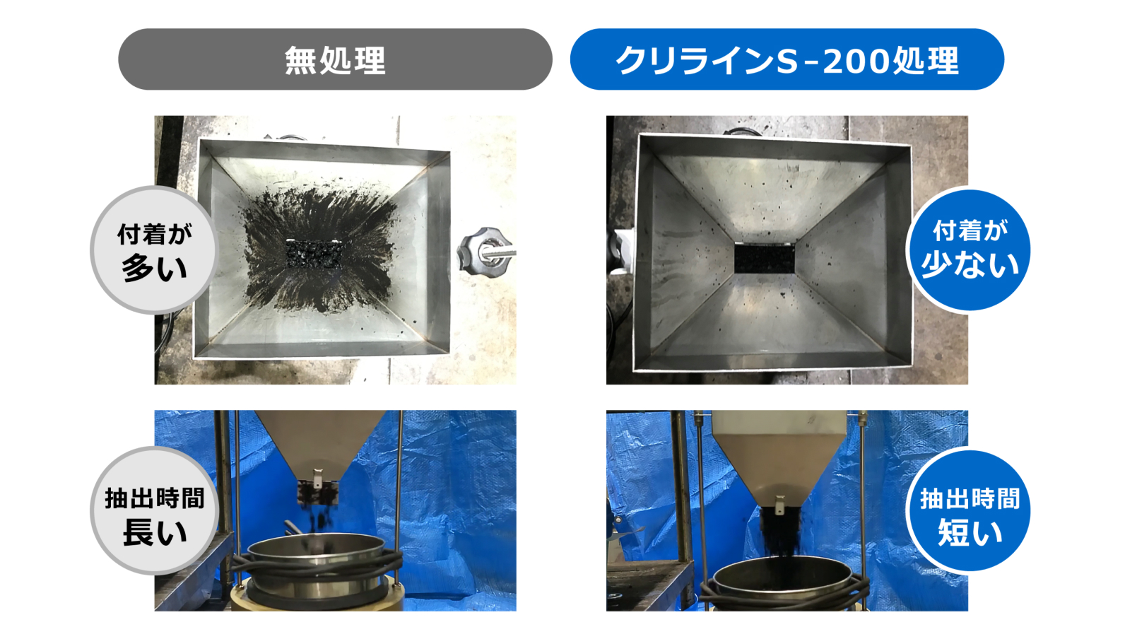 02. 原料改質剤「クリライン S™」シリーズの適用により、リサイクル原料の付着を防止することでホッパーの閉塞を防止し、生産性向上と資源投入削減、およびコストダウンに貢献