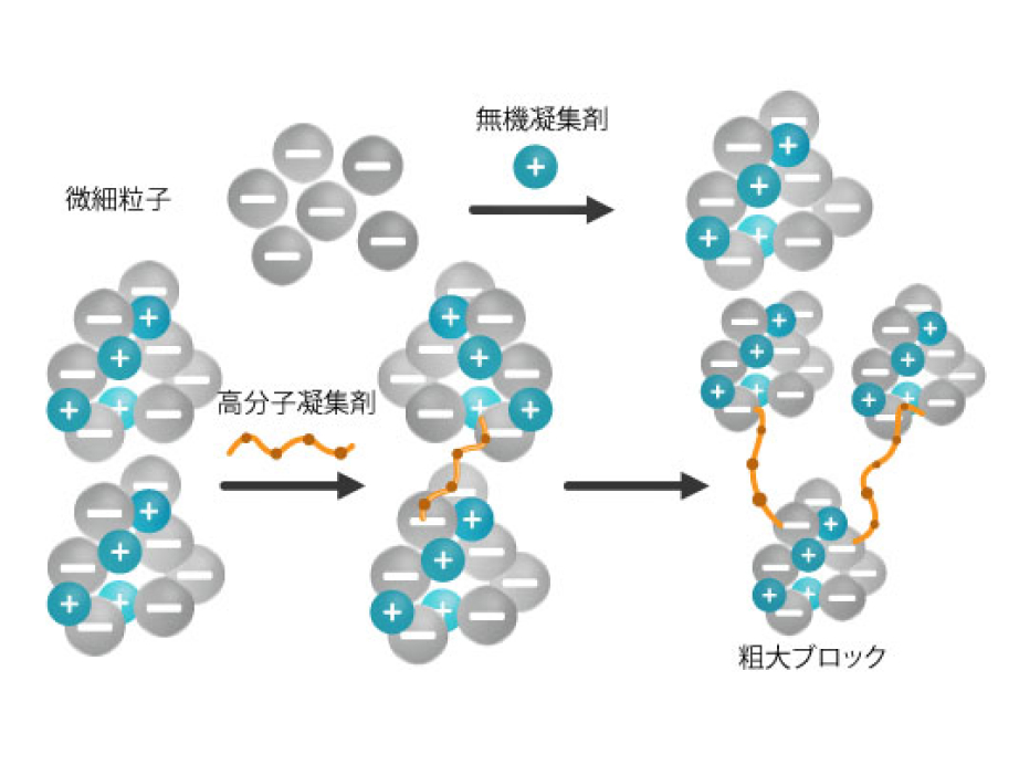 水中の微細な汚れや不純物を、寄せ集めて大きくし、水と分離しやすくするための技術です。