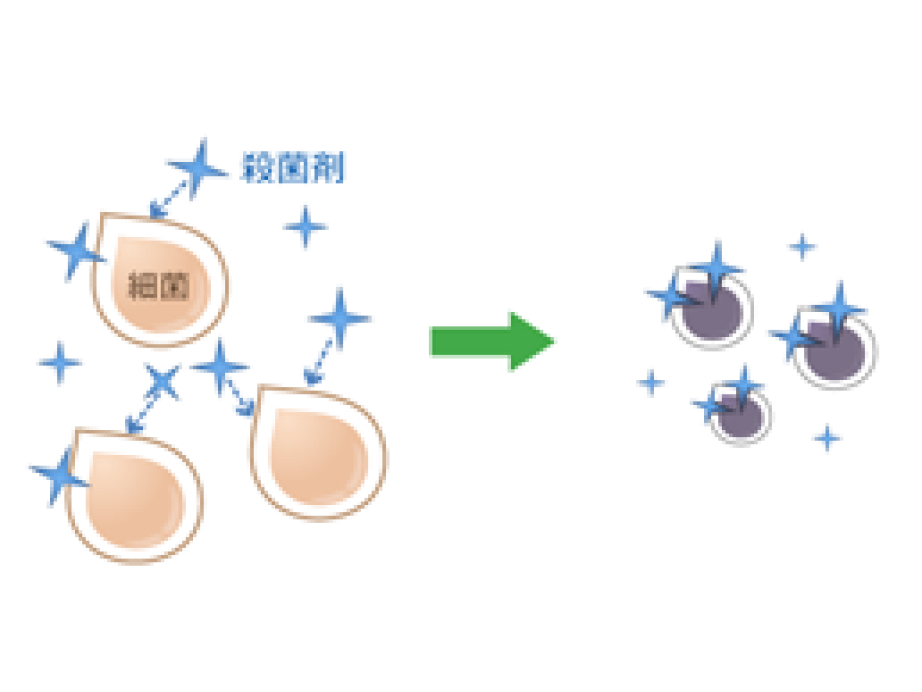 殺菌・制菌技術は、添加した薬品の成分によって、微生物の細胞膜を破壊することで微生物を殺滅したり、微生物が持つ増殖に必要な物質の性質を変え、活性を低下させることで微生物の増殖を抑制する技術です。