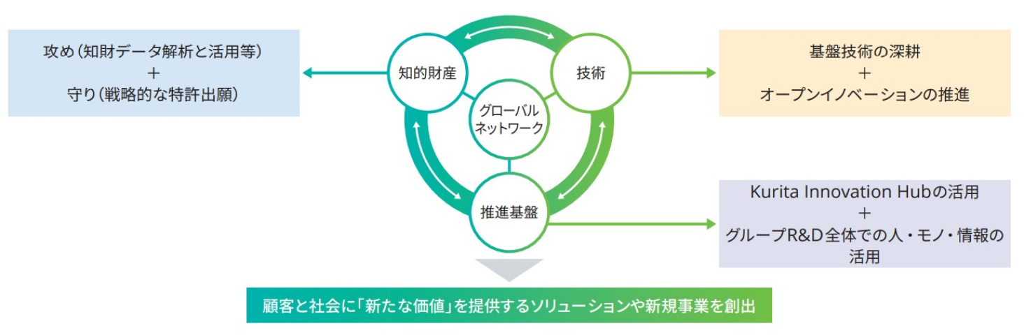 社会変化のスピードに対し、早期に潜在的なニーズを捉えソリューションを生み出すべく、基盤技術の深耕、スタートアップを含むオープンイノベーションの推進、グループR&Dの連携、知的財産のそれぞれの深化を図るとともに、経営がこれらの連携をグローバルに進め、積極的な投資も行いながら、顧客と社会に「新たな価値」を提供するソリューションや新規事業を創出します。