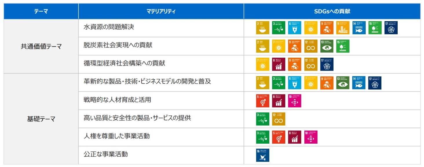 経営戦略の中核をCSRからサステナビリティに拡大し、クリタの稼ぐ力と持続可能な社会の実現の同期化を目指し、社会・環境に与える影響とクリタグループの企業価値に与える影響の2軸で抽出。