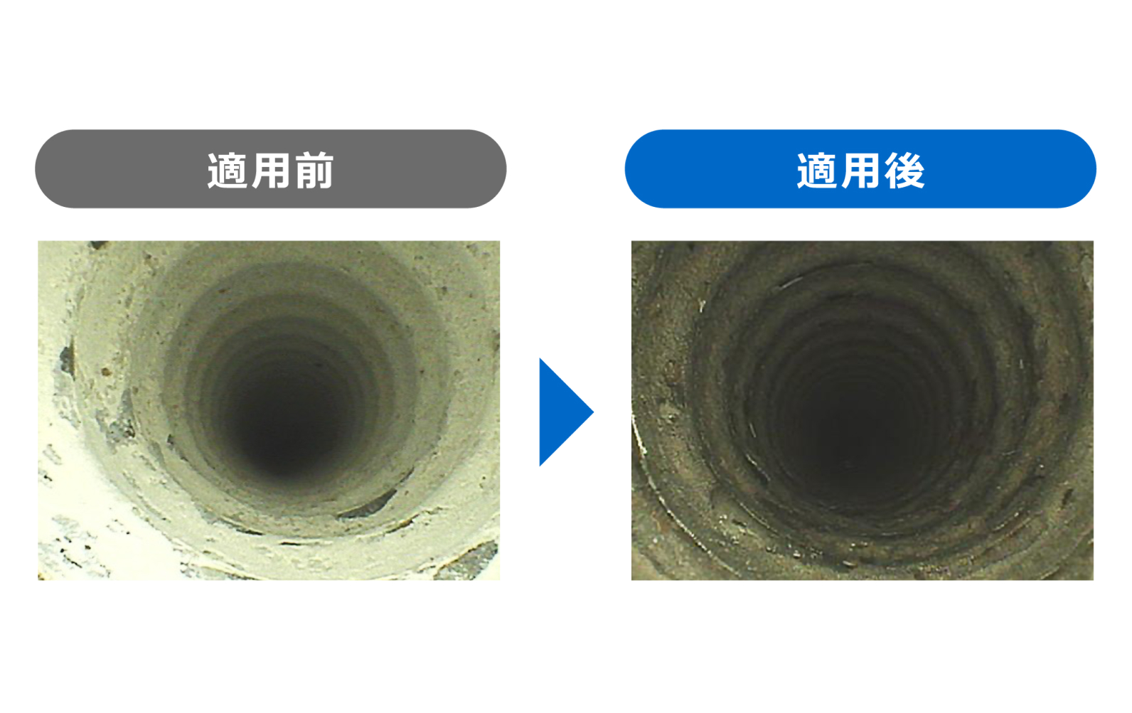 ボイラに付着するスケールは、熱交換の阻害に加えさまざまな障害の原因ともなるため、熱伝達率や設備の耐久性を維持するための、スケールの付着を防止するボイラ薬品が欠かせません。しかしながら、スケール成分を分散させる効果を有する従来の薬品では、薬品の処理能力を超えた硬度成分はスケールとして付着するため、スケール除去用の薬品で別途処理する必要がありました。