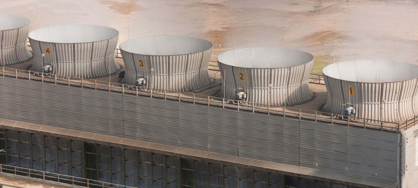 工場における冷却工程やオフィスビルの空調に欠かせない、冷凍機の熱交換器や冷却塔などを循環する冷却水に適用する水処理薬品です。主に冷却水系で発生する三大障害(腐食・スケール・スライム)を防止し、冷凍機の安定運転や節水、省エネルギーの実現に貢献します。