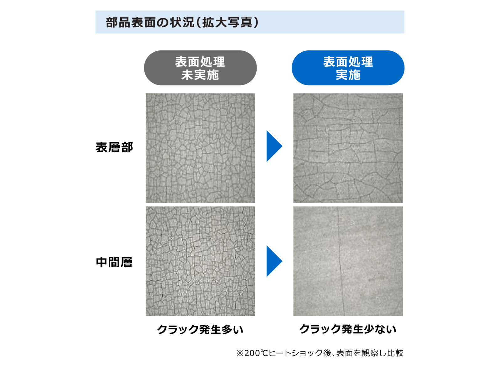 腐食や熱ストレスなどでクラックが生じやすい部品の表面処理や洗浄による資源化