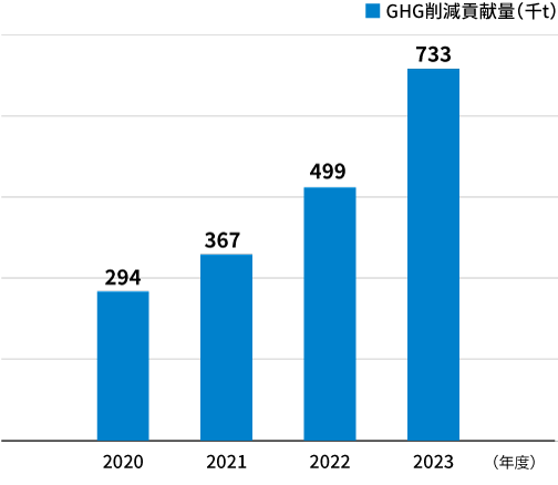 2023年度の実績は、新たに登録されたCSVビジネスによる貢献もあり、733千tと目標を達成しました。