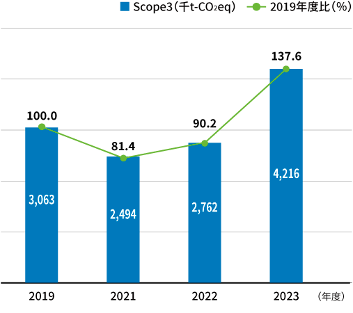 - Scope3の過年度の実績値について、集計の一部に誤りがあったため、2025年4月をもって実績値を修正しました。
