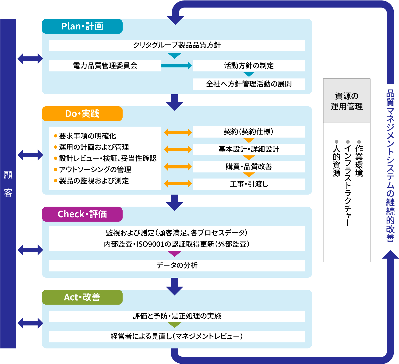 クリタグループは品質の継続的改善を目的として、製品・サービスを提供するために調達、製造、施工を行う生産プロセスを有する会社においてISO9001に則した品質マネジメントシステムの構築・運用を推進しています。監査結果等の運用の状態は当社の品質保証部門で共有しており、確認された課題への対応を実施しています。